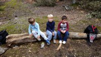 Estas dos fincas son paso de una excursión mucho más larga que para realizar con niños no es recomendable por la duración por lo que para la vuelta, volvimos hacia Menut y una vez llegamos a la carretera, la cruzamos y seguimos hacia la izquierda unos 100 metros hasta que nos encontramos un «botador» que inicia un camino en descenso hasta llegar de nuevo al monasterio