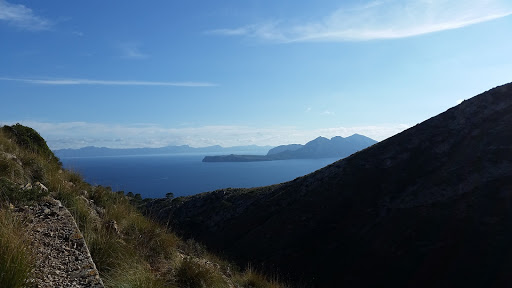 En total la ascensión dura 1 hora 40 minutos. Después de los primeros 30 minutos ya vemos claramente nuestro objetivo, el Coll de sa Bretxa a la derecha y a la izquierda tenemos la imagen del Fumat. Después de comer mientras disfrutamos de un buen descanso y de las increíbles vistas (el día de la excursión incluso conseguimos ver Menorca), es también interesante fijarse en los restos del antiguo telégrafo. Y como no, otra de las increíbles calas que podemos disfrutar, Cala en Gossalba además de la Bahía de Pollença.