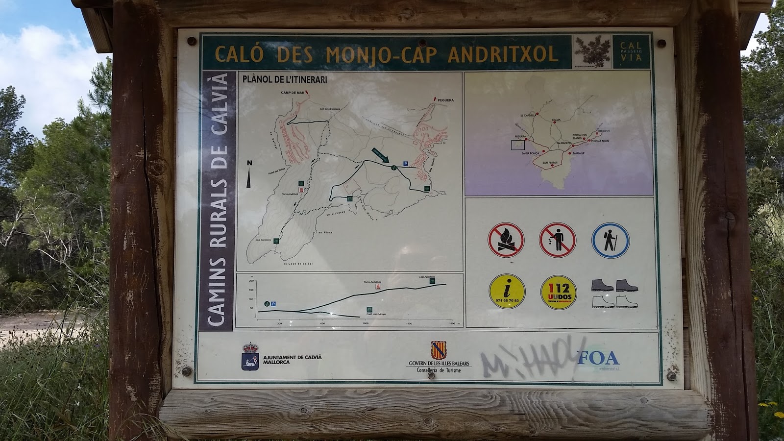 Nada más empezar nos encontramos dos mapas, uno de la excursión y otro que nos indica como llegar a la preciosa cala de es Caló des Monjo.