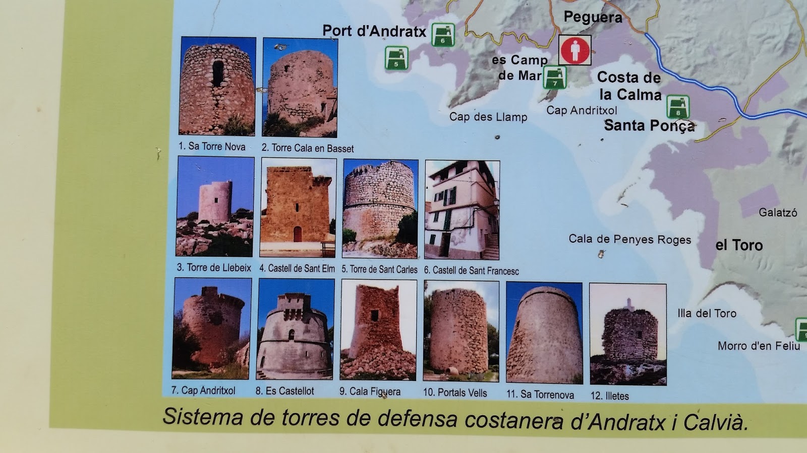 El camino no presenta ningún tipo de dificultad, son pistas anchas y las pendientes no son muy pronunciadas. Según vamos subiendo hacia la torre, podemos disfrutar de las bellas vistas de la costa de Calvia (Peguera, Camp de Mar….).