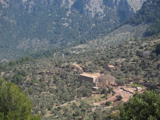 Iniciamos una pequeña ascensión. Subimos es coll den Marquès, un collado de unos 350 metros de altura. Una vez arriba, vale la pena dedicar unos minutos a observar Fornalutx. Después, cruzaremos la carretera y el camino está a la izquierda. Nos llevará pendiente abajo hacia el Puerto de Soller.