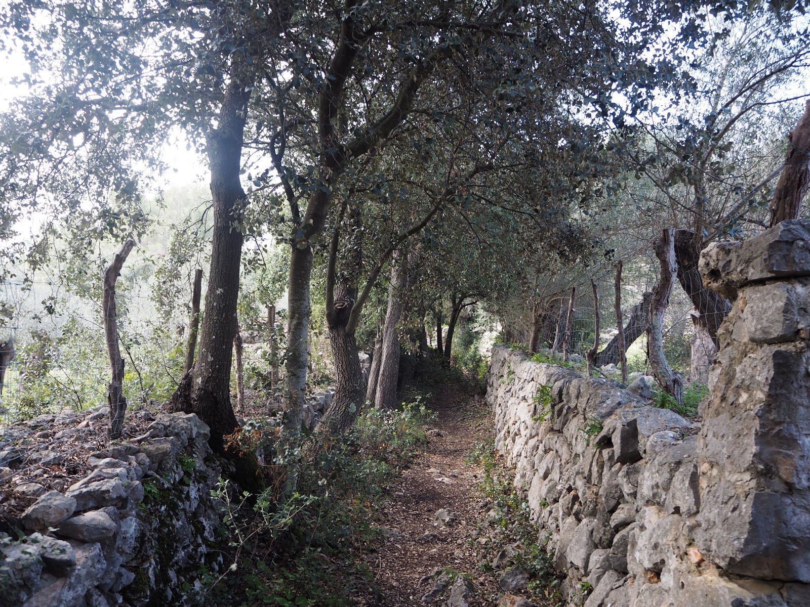 Iniciamos una pequeña ascensión. Subimos es coll den Marquès, un collado de unos 350 metros de altura. Una vez arriba, vale la pena dedicar unos minutos a observar Fornalutx. Después, cruzaremos la carretera y el camino está a la izquierda. Nos llevará pendiente abajo hacia el Puerto de Soller.