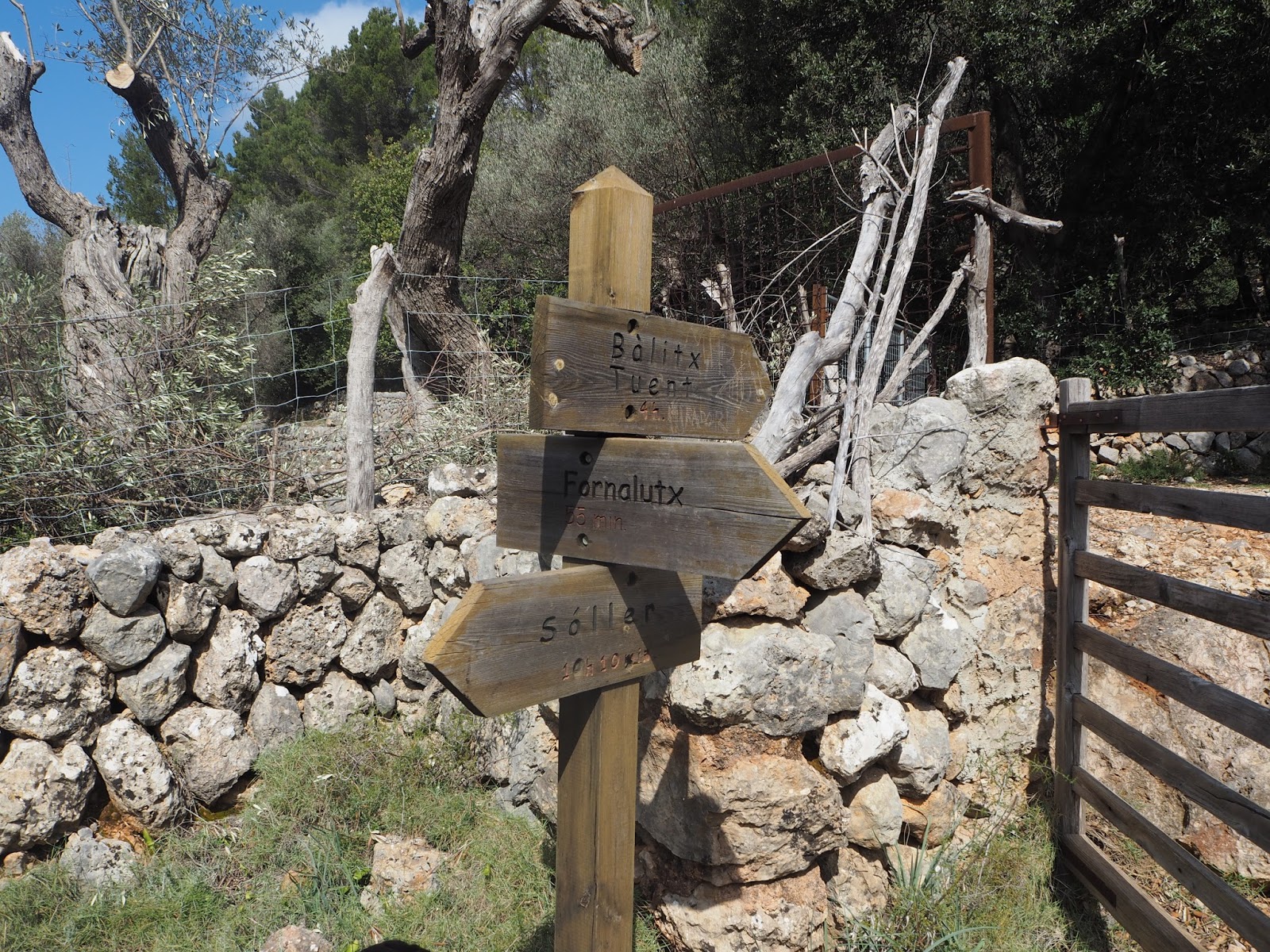 después de esta puerta 200 metros nos separan de nuestro primer destino. La señal de Fornalutx nos indicará el camino de vuelta. Cami de´n Nicó |