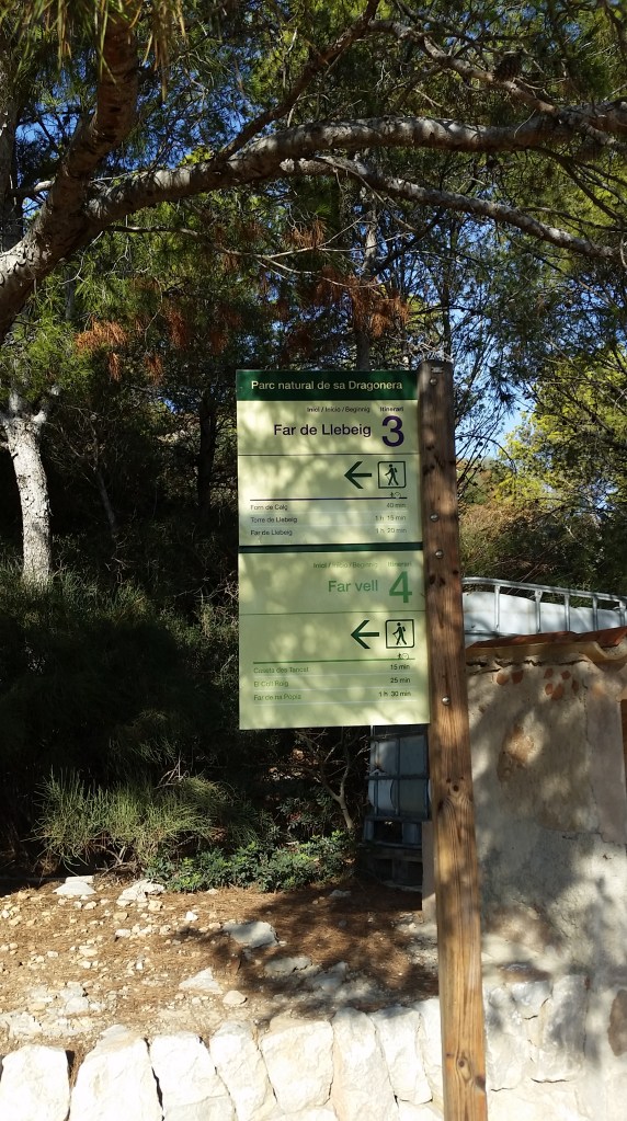 Nosotros elegimos la ruta más dura pero la más atractiva de todas. el faro de na Pòpia. Fue en su momento el faro de España construido a más altura. Se puso en funcionamiento el año 1852 hasta el año 1910 en que se apagó definitvamente. Su elevación provocaba que la niebla entorpeciera muy a menudo su visibilidad.