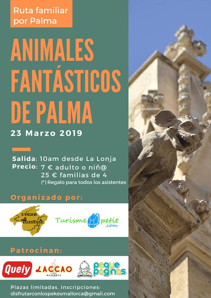 23 de Marzo de 2019, fue la fecha en que animales fantásticos de Palma empezó su historia. Una idea de Turisme Petit, que desde el primer momento me cautivó y decidimos ponerla en marcha. Una ruta sencilla, intentando dar a conocer toda la riqueza de Mallorca en cuanto a historias y leyendas fantásticas relacionadas con animales. Intentando motivar a niños y mayores a fijarse en detalles de lugares y edificios emblemáticos de nuestra ciudad.