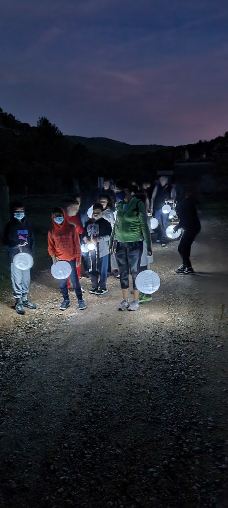 Para llevarlo a cabo, usamos farolillos de papel e hicimos el camino desde el parking hasta la casa. Menos mal que no apareció ni el Comte ni su caballo.