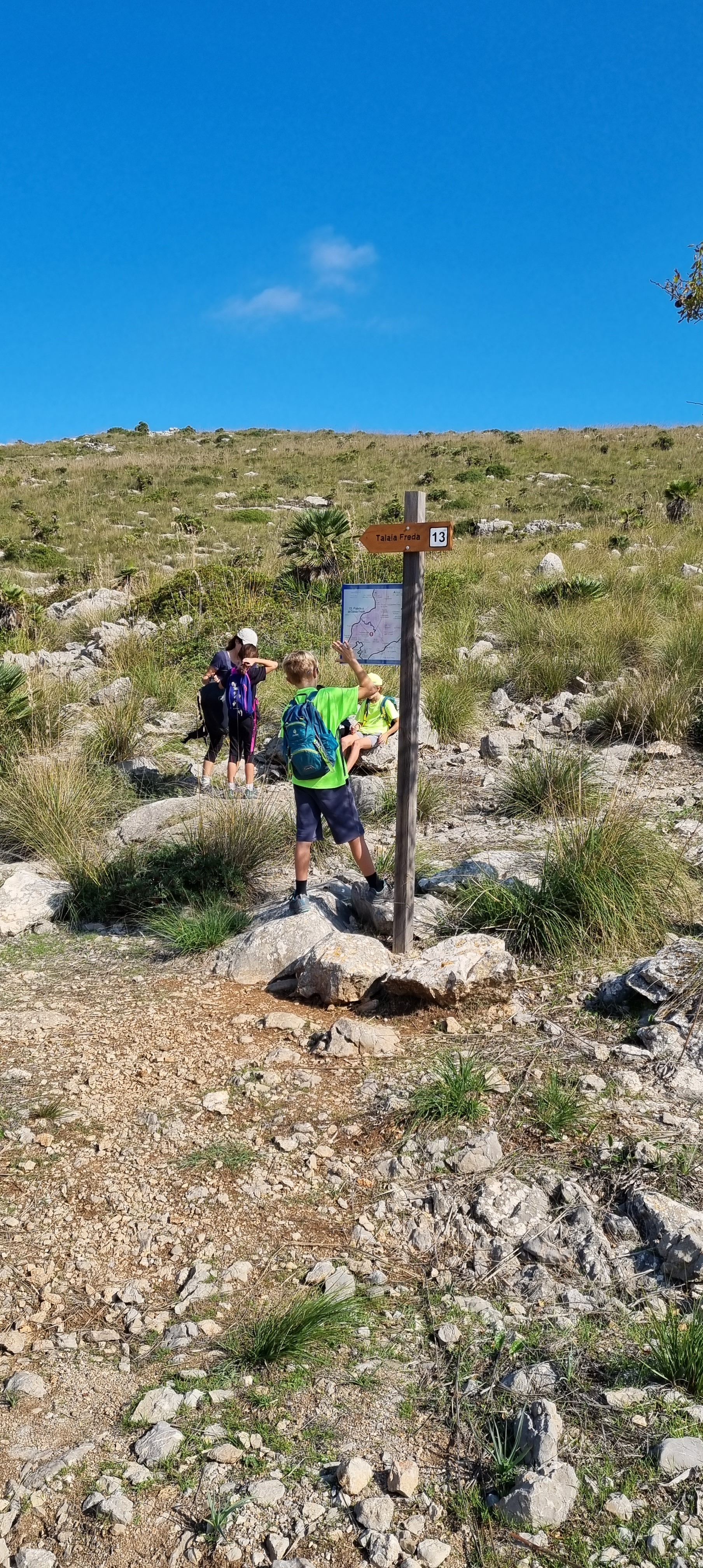 Después de un ratito de subida constante, llegamos al campamento de los soldados donde podremos disfrutar de unas vistas privilegiadas y aprovechar para descansar un poquito. A lo largo de nuestra ruta encontraremos indicadores que conectan con otras excursiones entre otras sa Talaia Freda que es la montaña más alta del parque.