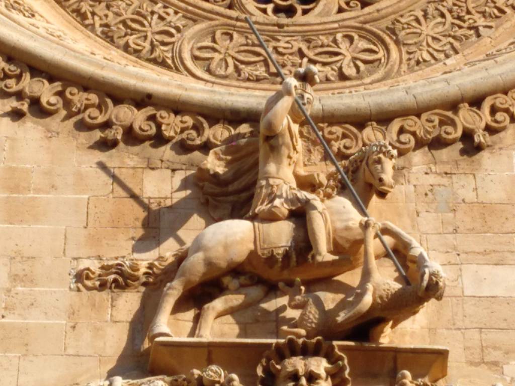 Sin abandonar su fachada y te recomiendo que te fijes en la escultura de San Jorge matando al dragón. El origen del templo y de nuestro personaje se remonta al Reino de Mallorca. Sus nobles tenían como patrón a San Jorge. En el año 1460 se funda la cofradía de los caballeros de San Jorge, cuya sede era esta basílica.