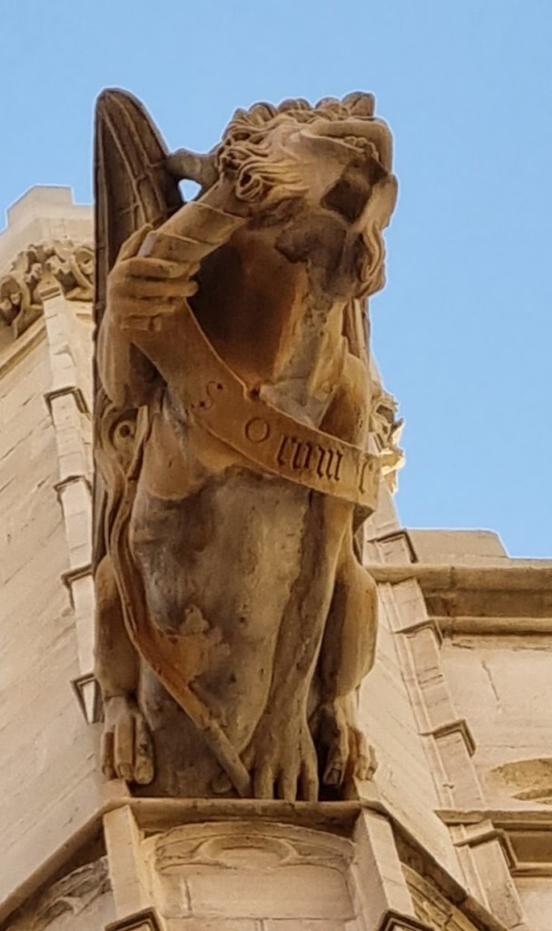 Pero por encima de todo, hay un elemento que hace de este emblema de Palma algo único. Podrás encontrar en ella a la gárgola más friolera de la ciudad. En ella esta la inscripción que dice «O COM ES FRED» o lo que es lo mismo, «que frío hace».