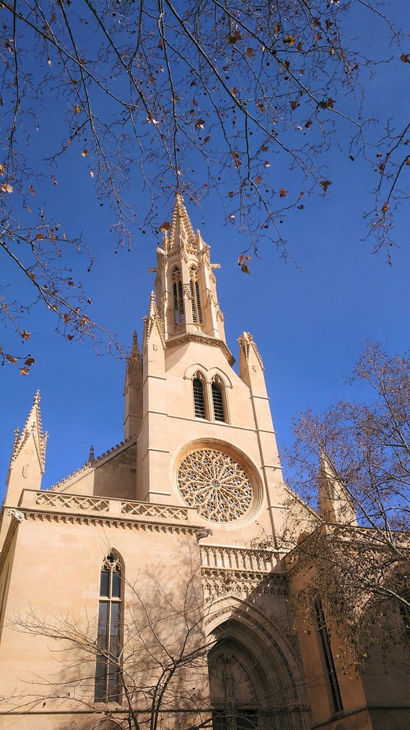 Los franciscanos fueron la primera congregación que se estableció en Palma una vez llega la conquista de Mallorca. El inicio de su construcción data del año 1281. Arquitectónicamente hablando es una iglesia gótica, pero vamos a empezar a curiosear. Si te fijas, es una fachada muy sobria pero con un portal muy ornamentado construido el año 1598 pero….¿sabes que pasó con el original? No lo vas a creer pero lo partió literalmente un rayo.